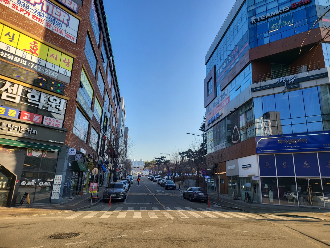 맞은편 앞과 옆 쪽으로 학원가 빌딩이 형성되어 있고요. 주변 반경 900미터 안에 7,000세대 이상 무실동 아파트와 초, 중, 고가 있습니다.