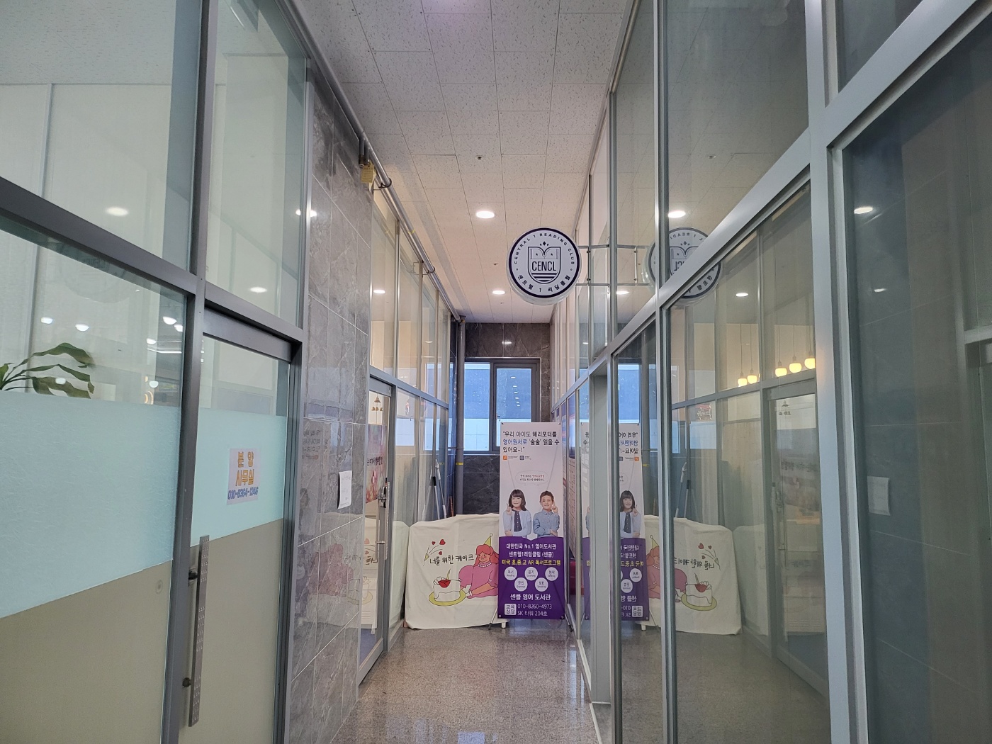 SK타워 204호 복도 끝에 위치한 센클 영어 도서관 입구입니다.